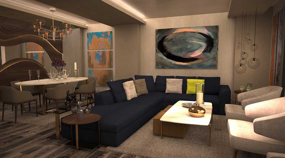 Bu projemizde dairenin tüm iç mimari işleri tamamlanmıştır, Tavandan tavana + duvardan duvara.